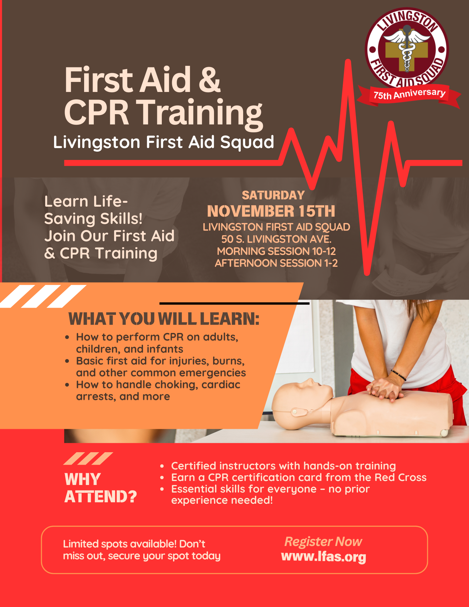 The Livingston First Aid Squad is an all-volunteer organization that serves the Township of Livingston, New Jersey. For 75 years, we’ve been able to provide emergency services to the community we all live in.